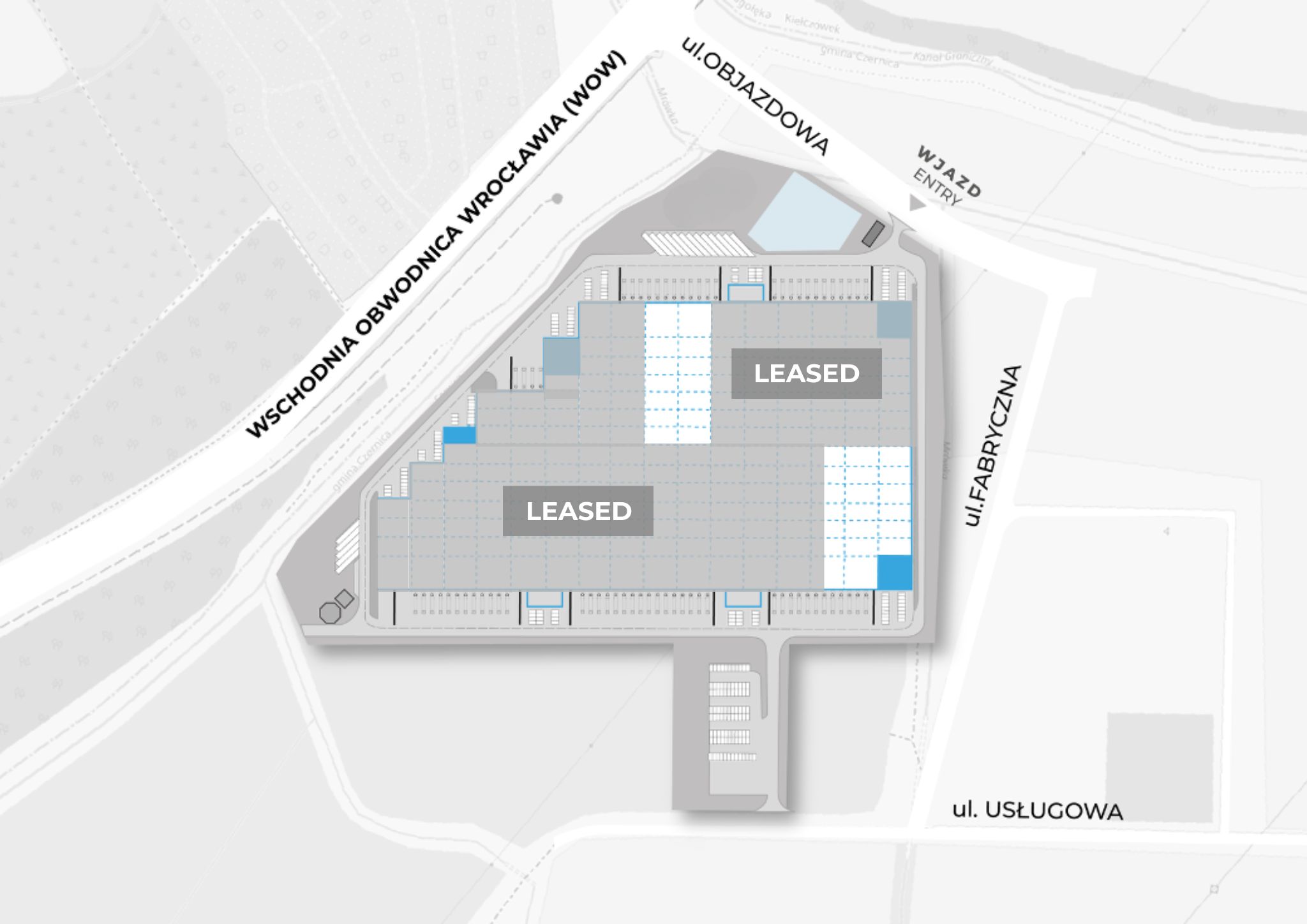 What distinguishes our project is its excellent location, in the town of Dobrzykowice, with direct connection to the Wrocław bypass, which allows not only quick distribution of goods both on the Polish market and abroad, but also guarantees convenient access to the project for your employees.